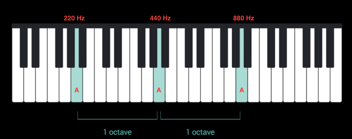 440x2=880 (3옥타브) / 880x2=1760 (4옥타브) / 1760x2=3520 (5옥타브) / 3520x2=7040Hz (6옥타브)