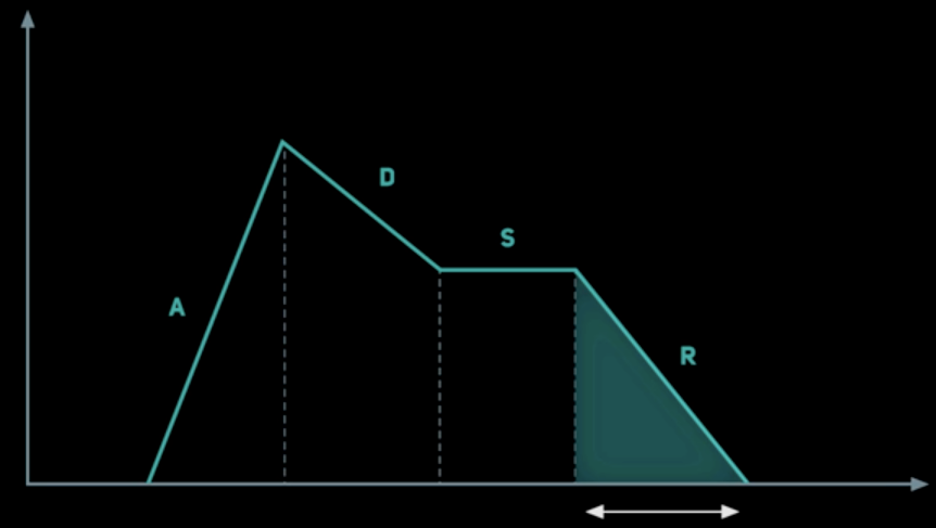 - Release: Sustain에서 0 amplitude, 제로 볼륨으로 내려가는 속도.
