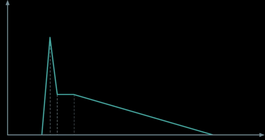 - Decay: Sustain으로 내려가는 속도.