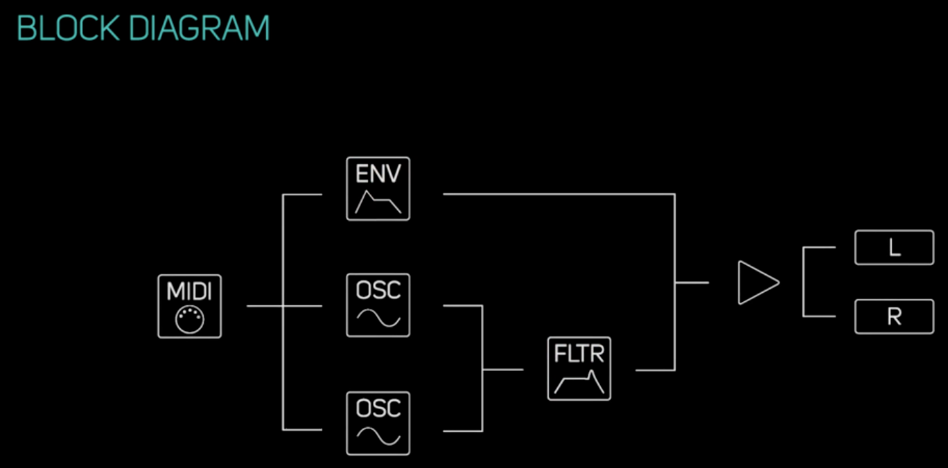 신디사이저 메뉴얼을 보다보면, 블록 다이어그램이라고 해서, 신디사이저의 신호 흐름을 시각화해놓은 다이어그램이 제공된다.