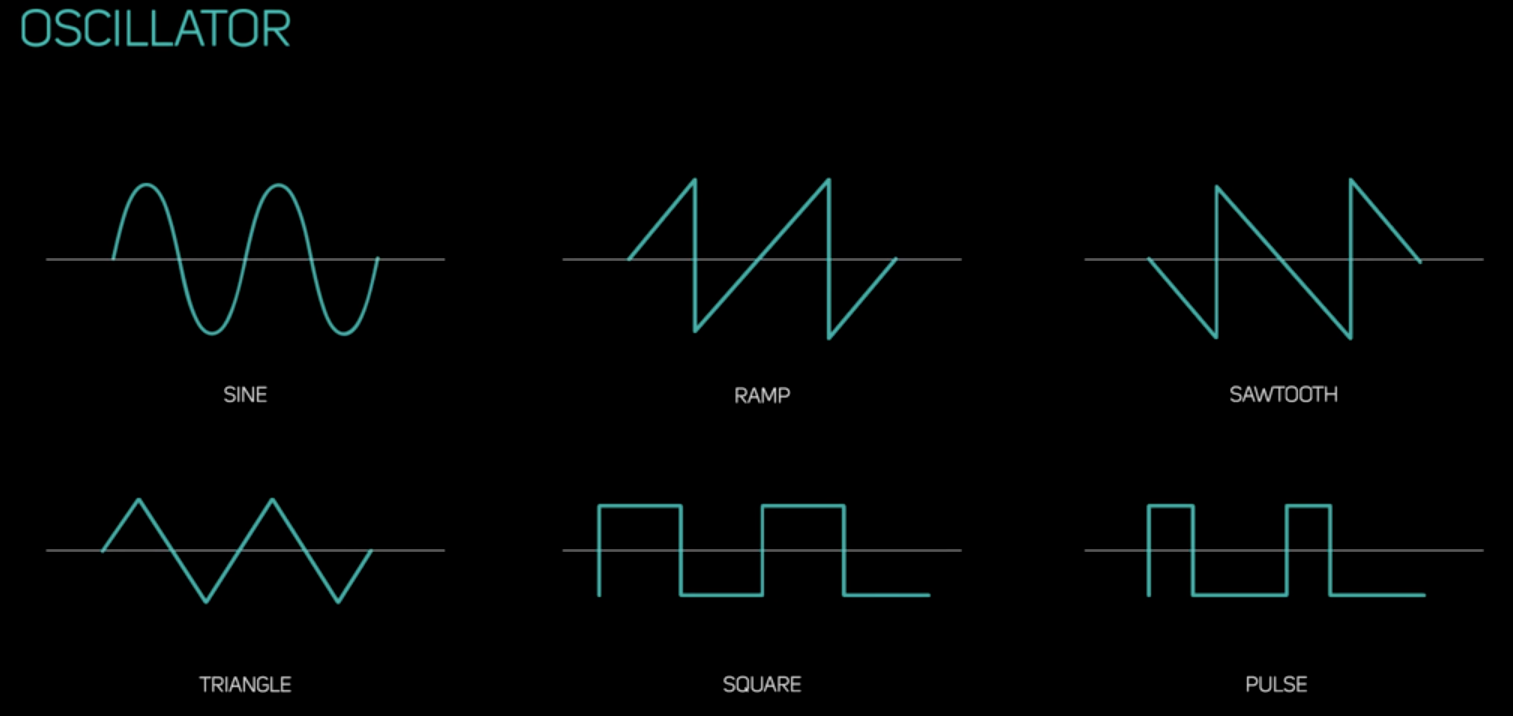 Noise: 요즘에는 오실레이터에 노이즈를 추가하는 회사들이 많아졌다. 노이즈는 기본적으로 화이트노이즈와 핑크노이즈가 있다. 화이트 노이즈는 모든 주파수대역에 동일한 에너지가 분포되어있다. 하지만 우리의 귀는 고역대에 더 민감하기 때문에, 우리 귀에는 다소 시끄럽게 들린다. 핑크 노이즈는 인체공학적으로 우리 귀에 편하게 들리도록 고역대를 필터링한 것이다. 집중도를 위해 화이트 노이즈를 도서관이 많은데, 사실상 핑크 노이즈다. 아무튼 고역대를 필터링 했기 때문에, 더 부드럽고 듣기 좋다. 소리에 부드러움을 더할 수도, Flanger와 Phaser 같은 딜레이 이펙트를 더 두드러지게 할 수도 있다. 특히 노트의 어택 부분에 아주 유용하게 사용되는데, 대부분의 어쿠스틱 악기들은 어택에 불가피한 노이즈가 들어가게 된다. 퍼커션, 드럼 신스는 이 노이즈 오실레이터가 없다면 단물 빠진 껌과 같다. 많은 신스가 현재 독립적인 노이즈 오실레이터를 제공하고 있고, 운이 좋다면 노이즈에 엔벨롭도 달려있다.