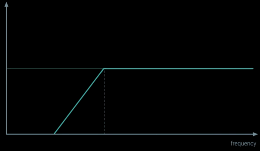 저역대를 깎아내는 High pass filter. Low Cut filter 라고도 불린다. (High는 필터링 없이 내보내고, Low는 깎아내는)