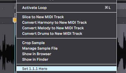 이 표시를 만들고 우클릭해서 Set 1.1.1 Here를 눌러주면 이 지점이 비트의 시작점이 된다.