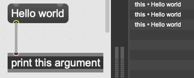 근데 하나 의문점이 드는 것이, 왜 this argument-Hello world가 아니냐는 것이다. 이유는 print 오브젝트의 특성 때문이다. print 오브젝트는 오직 하나의 argument만 받을 수 있기 때문에 this 다음에 argument는 무시하게 되는 것이다.