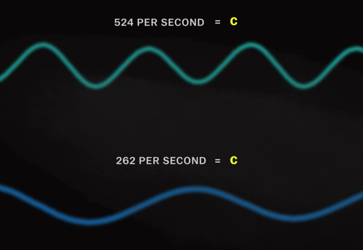 남자와 여자에게 C음을 노래하라고 해보면, 보통은 한 옥타브 차이를 두고 노래를 합니다. 옥타브란 조파수의 비율이 두배 또는 그 반인 음정들을 말합니다. 피아노로 치면 이런 것이죠.