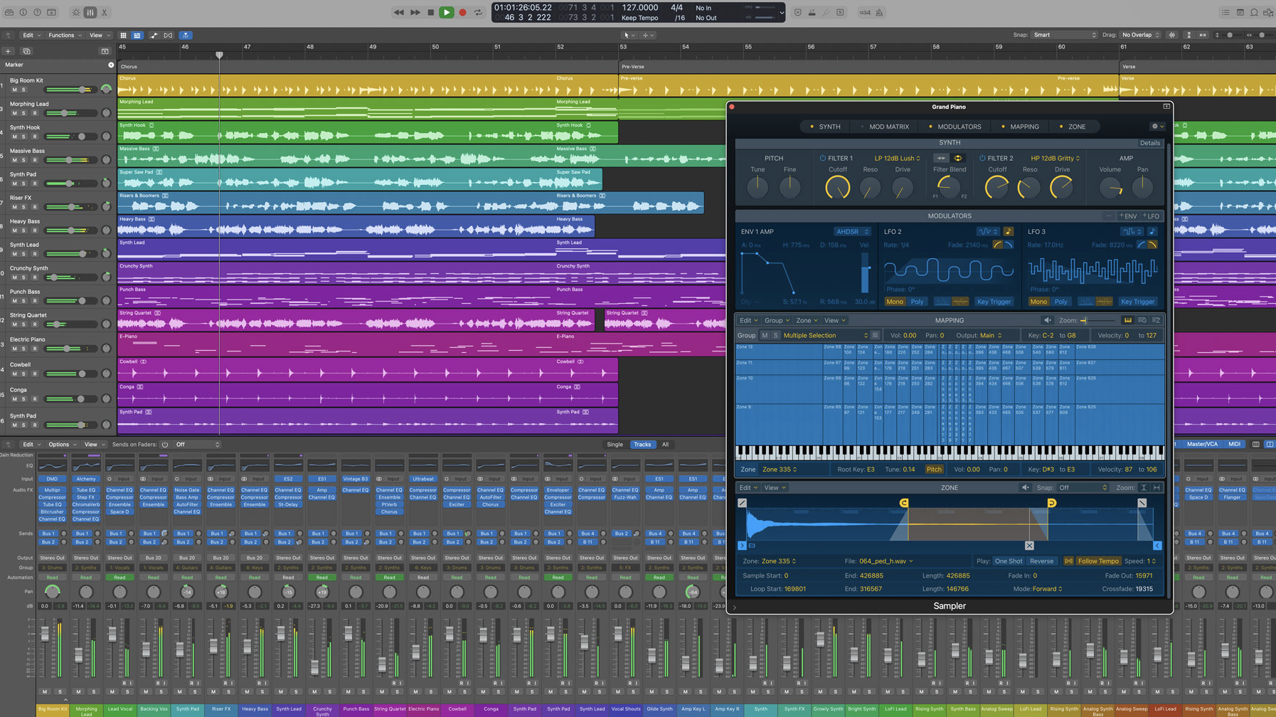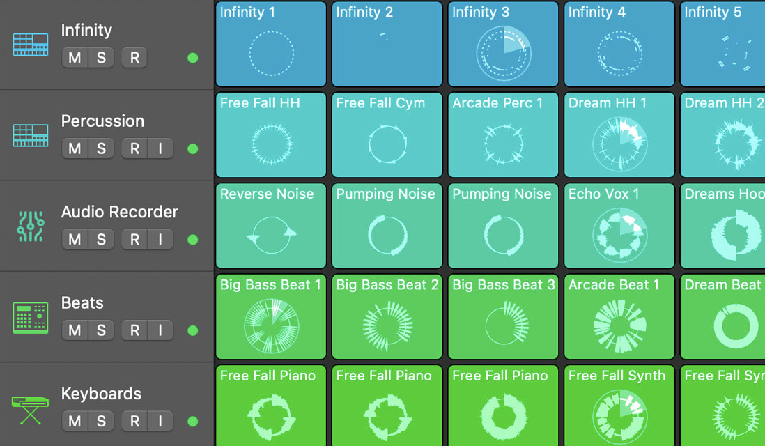 애플스럽게 참 직관적이다. 예쁜 컬러코딩과 구성요소들의 배치가 깔끔하다. 어디 하나에 특화되어 있다기 보다는 다방면으로 잘 쓰일 수 있는 프로그램이다. 전문적인 작곡을 하거나, 비트메이킹을 하거나, 음악 편집이나 믹싱 마스터링을 하거나 모두 쓰일 수 있다.