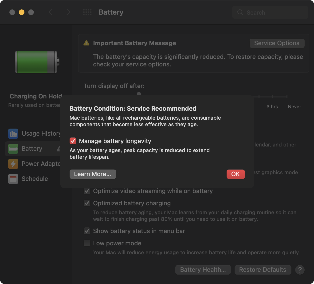 애플이 말하기를, 가장 최신에 나온 M1칩 맥북의 배터리는 1,000 사이클까지 돌릴 수 있다고 한다. 이쯤 되면 배터리를 교체할 시기라는 것이다.