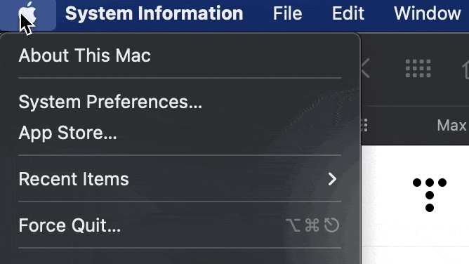 1. 애플 사과 로고를 누르고, Option key를 누른다.