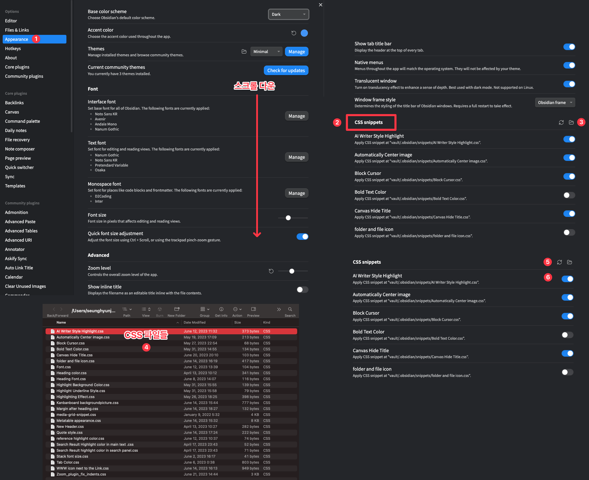 - css snippet on/off 토글로 스타일을 적용 시킬 것인지 아닐 것인지를 설정한다.