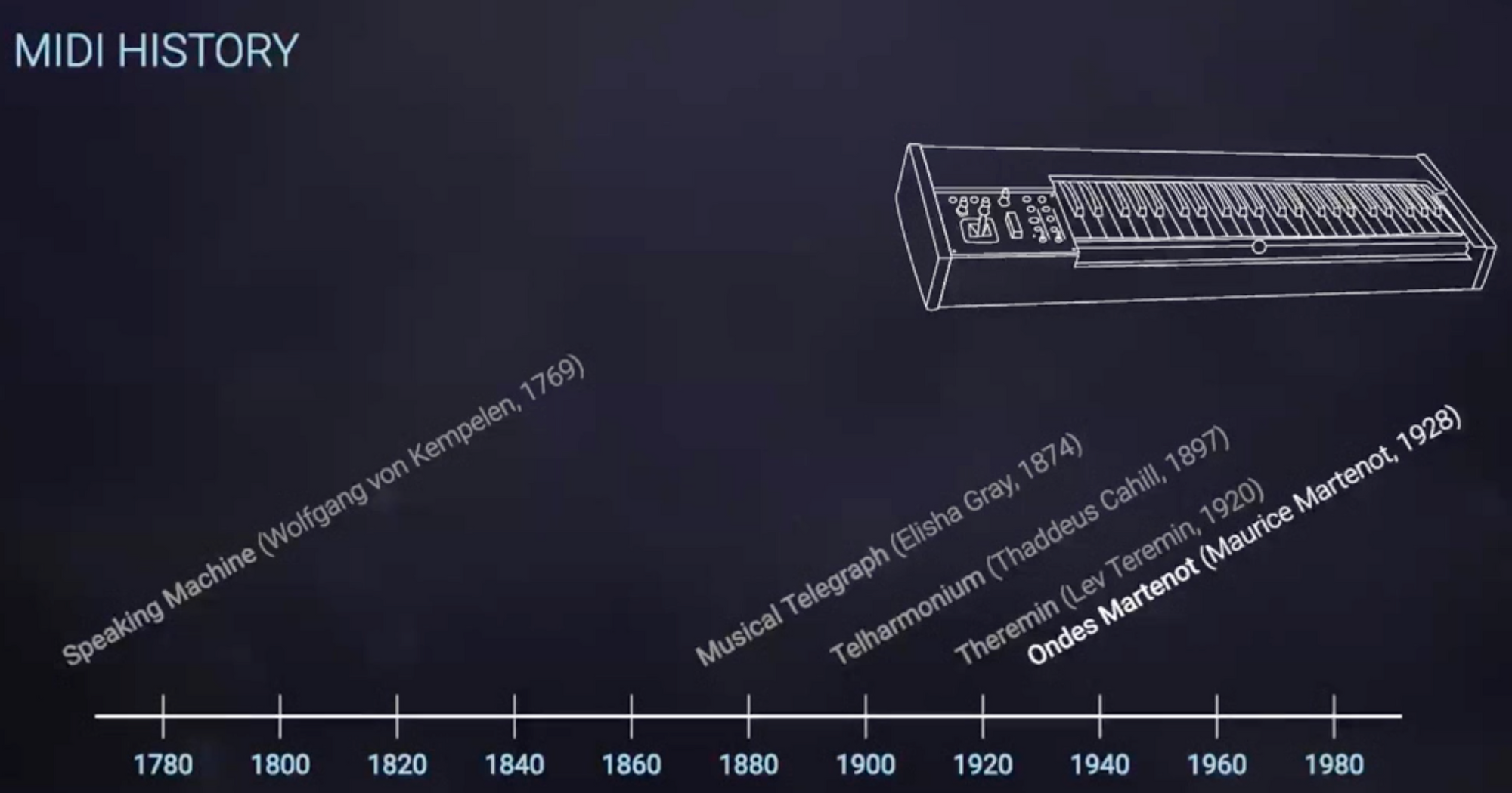 1928년 프랑스 첼리스트이자, 1차 세계대전 당시 라디오 전산기사, 발명가였던 Maurice Martenot는 Ondes Martenot을 발명합니다.