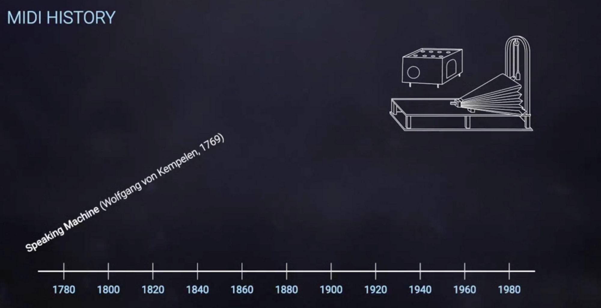 1769년 이라는 헝가리 저술가이면서 발명가인 Wolfgang von Kempelen이 Speaking Machine (말하는 기계)를 개발했습니다.
