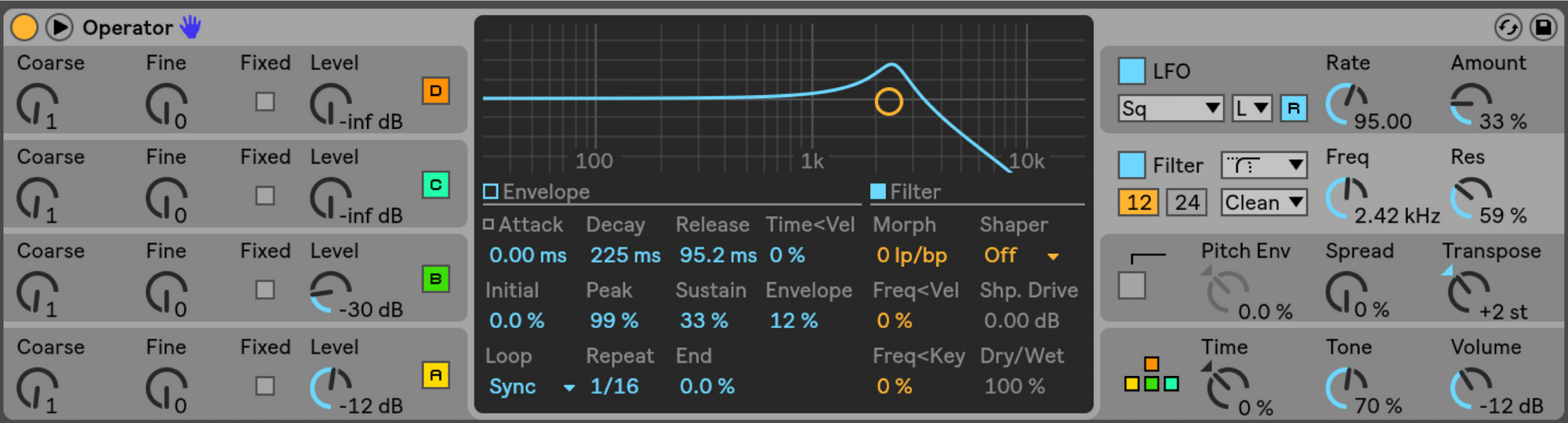 Operator는 여러 합성기법들을 결합시켜 만든 에이블톤사의 진보적이면서 두루두루 사용되는 유연한 신디사이저입니다.