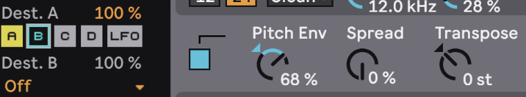 질감을 표현해주는데 Pitch Envelope은 필요가 없으니, Dest.A에서 B Oscillator 토글을 눌러 off 해줍니다.